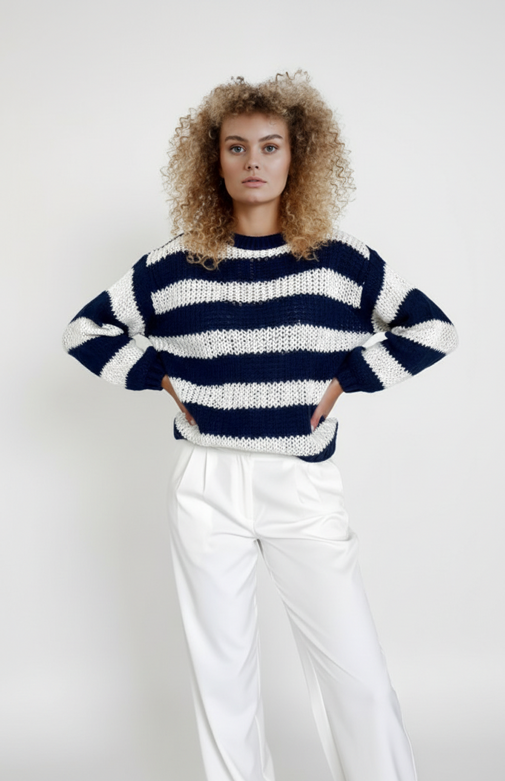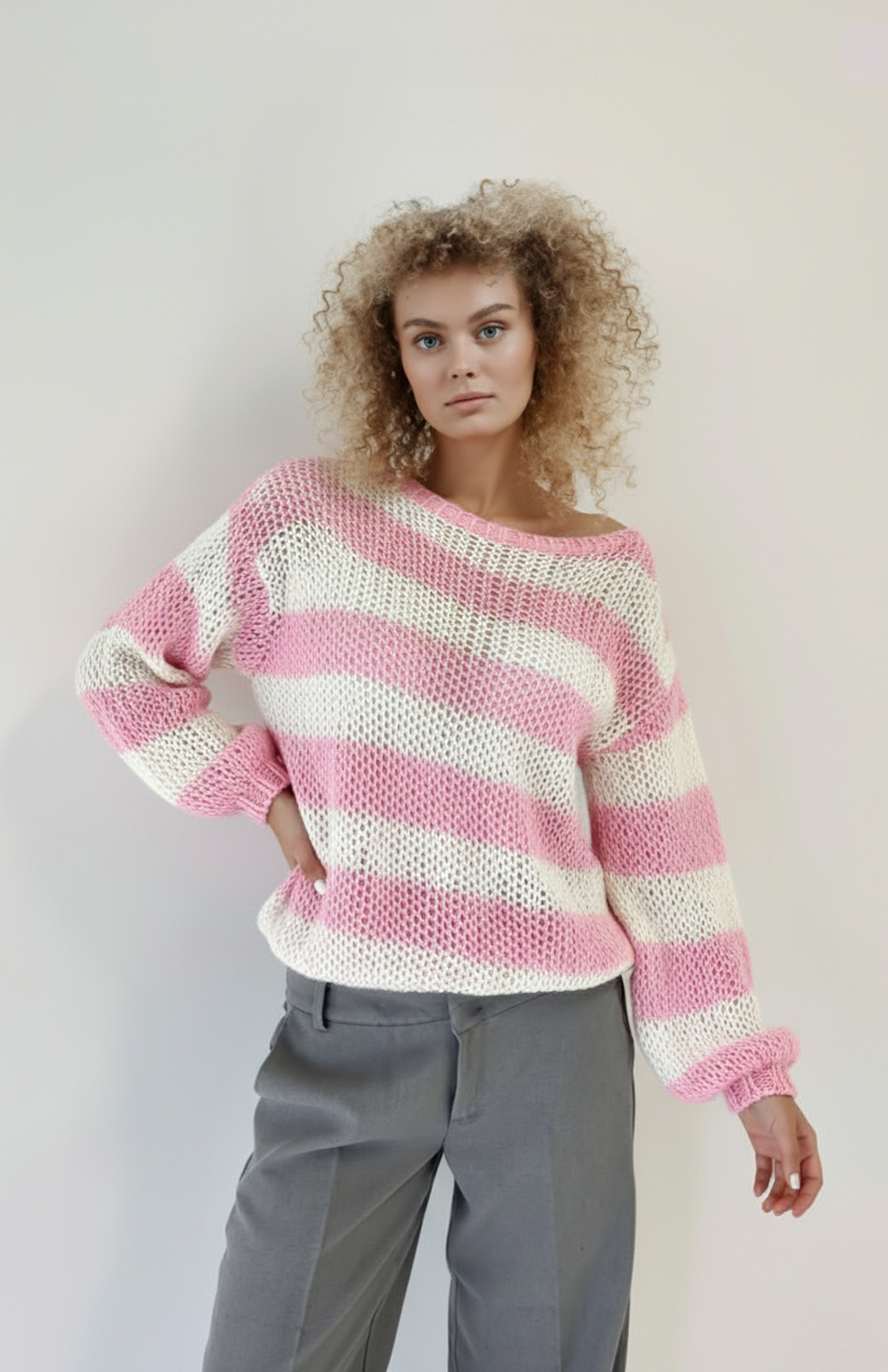 Seline Dames Trui | Gestreept | Grof Gebreid | Relaxte Pasvorm