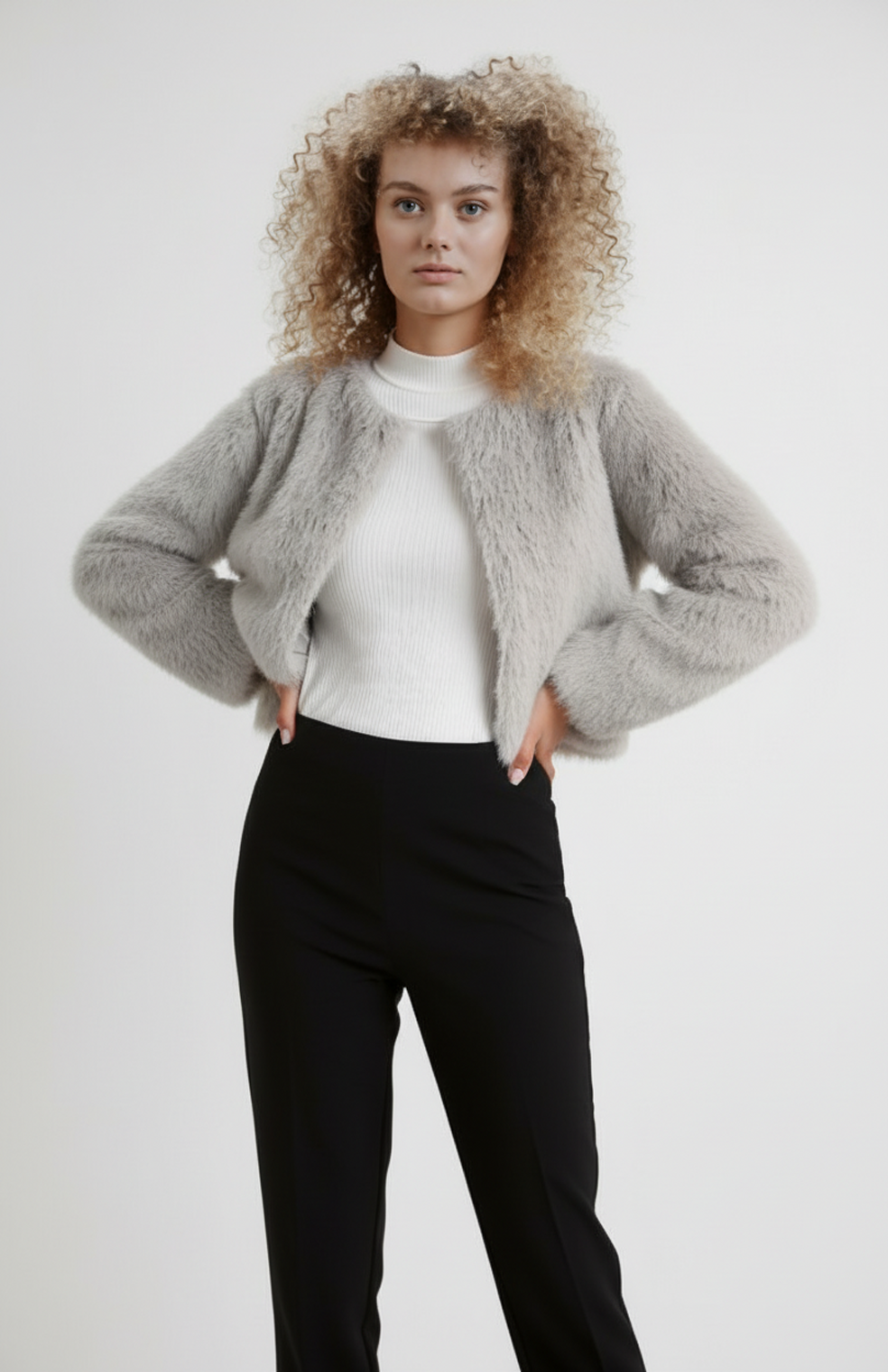 Fleur Dames Korte Jas | Zachte Faux Fur | Ronde Hals | Rechte Snit