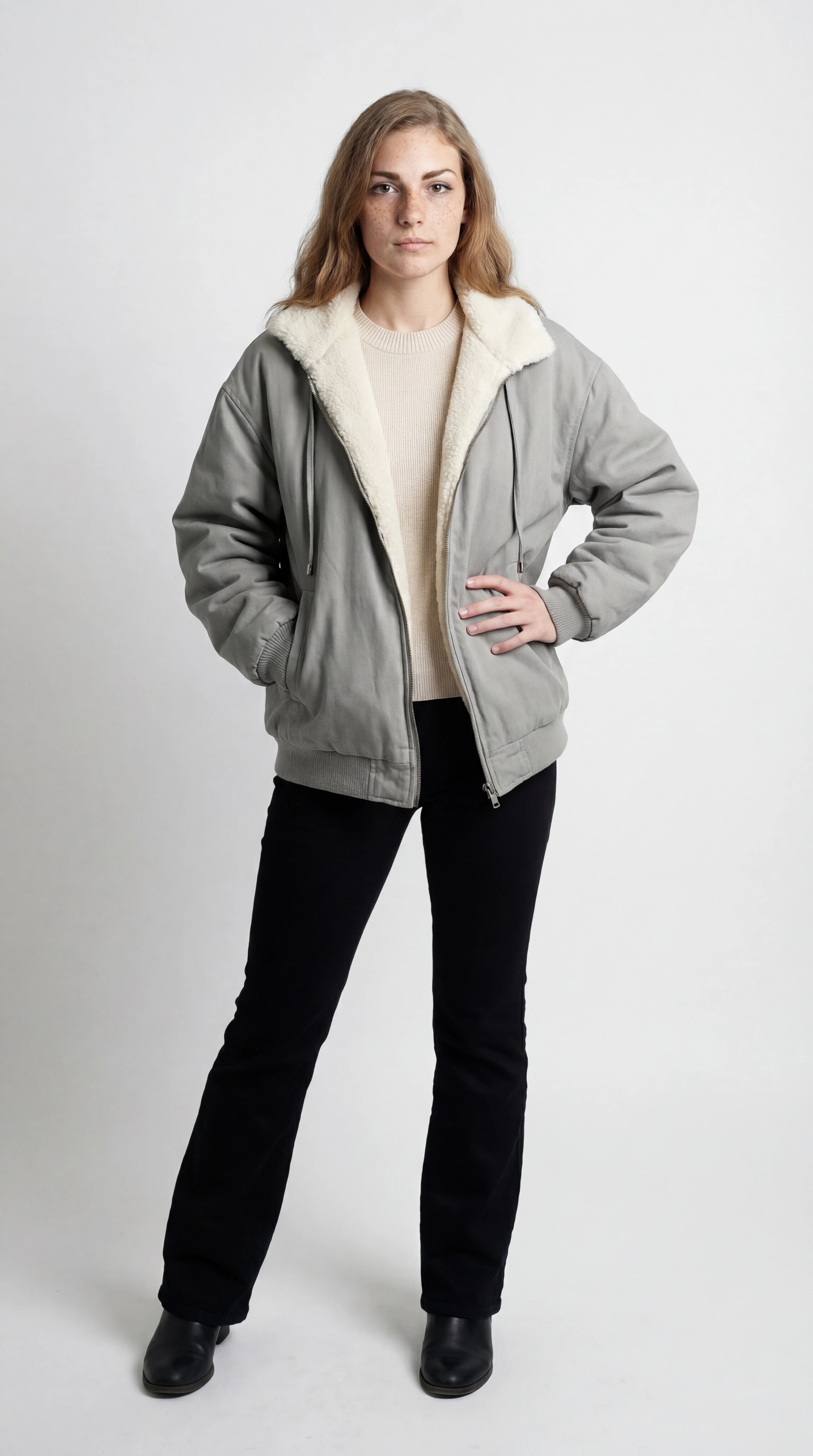 Deze gevoerde bomberjas biedt een perfecte combinatie van warmte en stijl. Het oversized model met elastische boorden zorgt voor een comfortabele pasvorm, ideaal voor koude dagen. De zachte sherpa kraag voegt een extra laag van isolatie toe, waardoor het een praktische keuze is voor de winter.