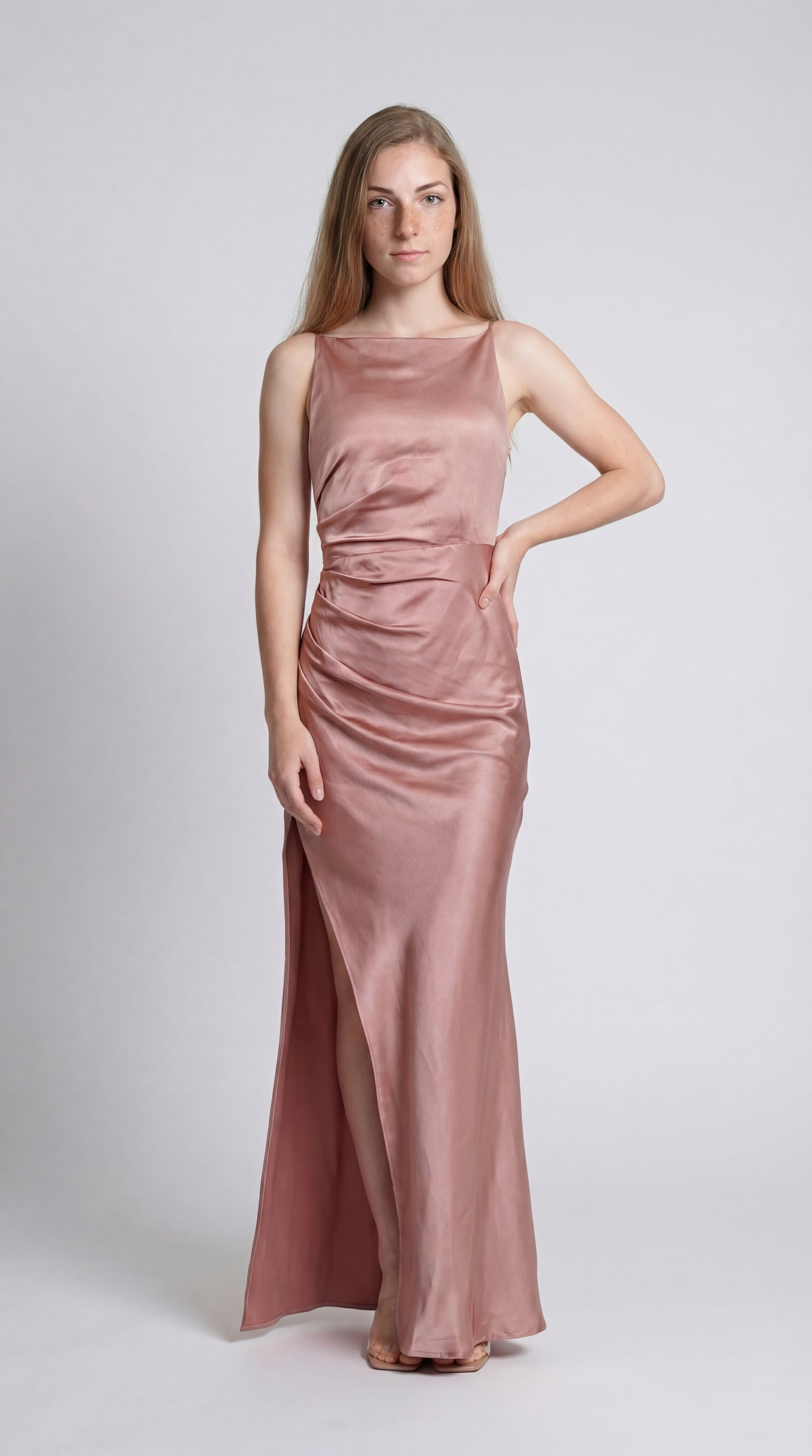 Fijne spaghettibandjes en rechte halslijn voor een minimalistische, chique look