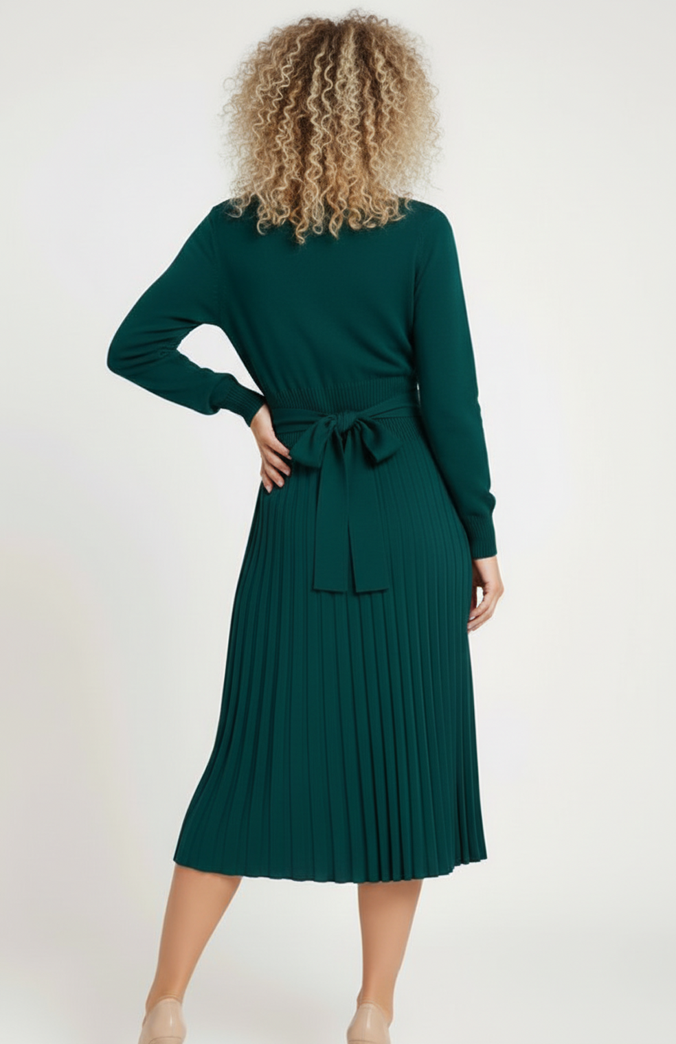 Ginevra Dames Gebreide Jurk | Lange Mouwen | Plissé Rok | Tailleceintuur