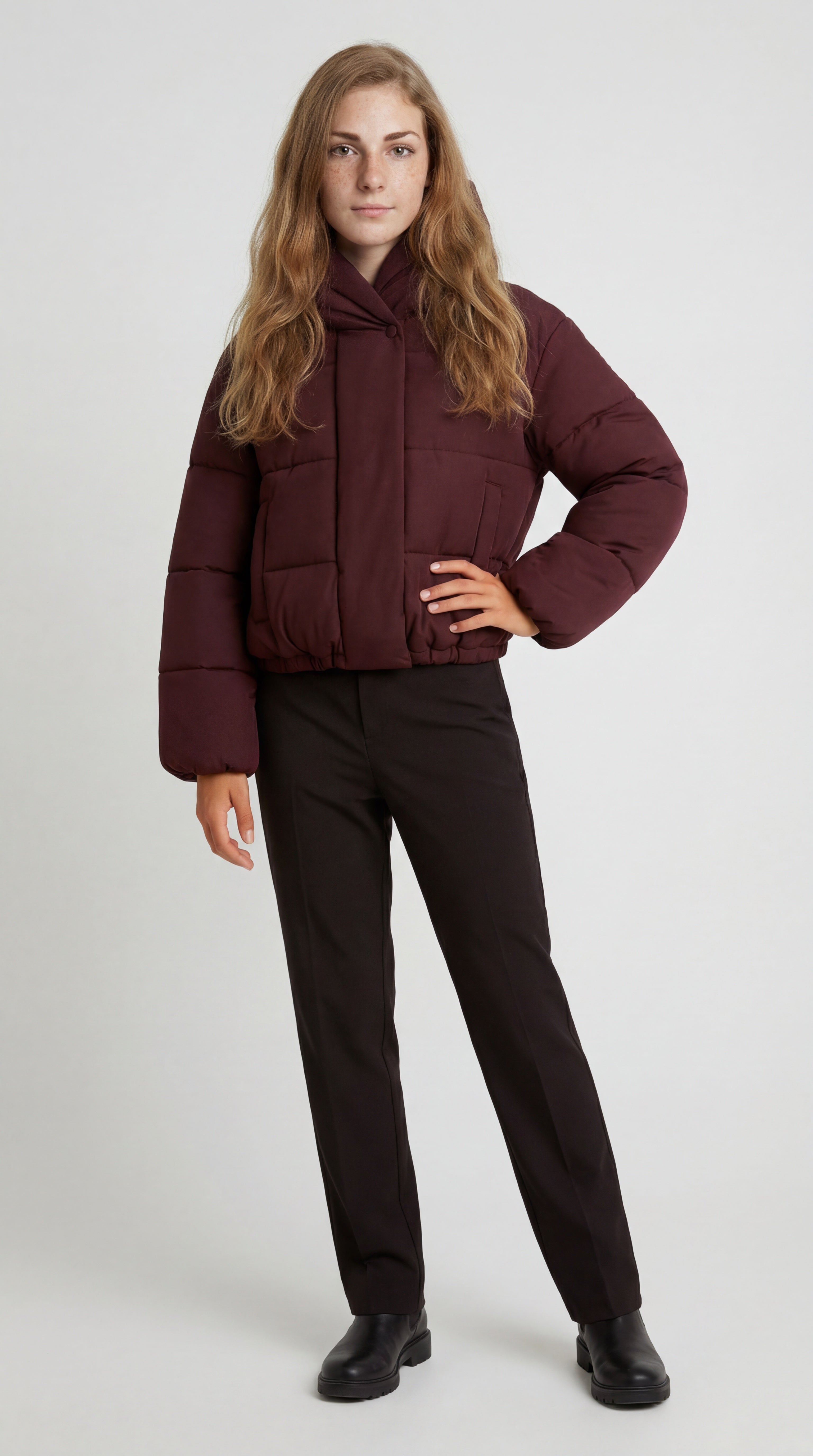 Deze korte gewatteerde damesjas biedt optimale warmte met een dikke vulling en een brede capuchon. Het minimalistische ontwerp in combinatie met een elastische zoom zorgt voor een moderne en comfortabele pasvorm, ideaal voor koude dagen.