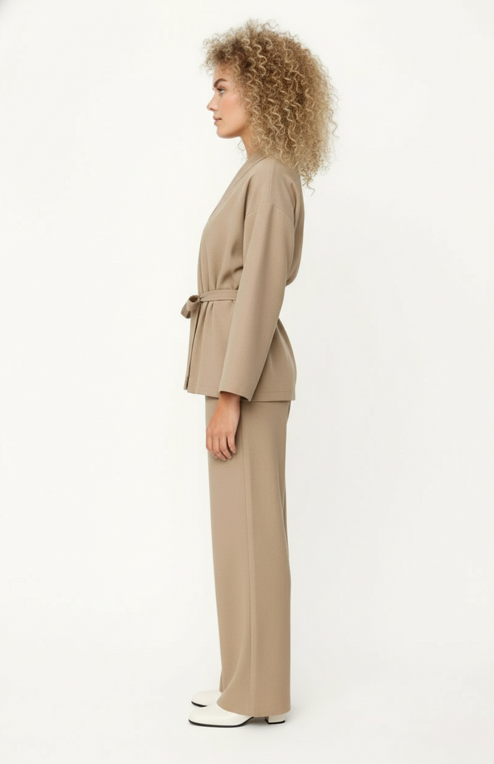 Dames Co-Ord Set | Kimono Top met Ceintuur | Wijde Pantalon | Elegante Relaxed Fit in Beige