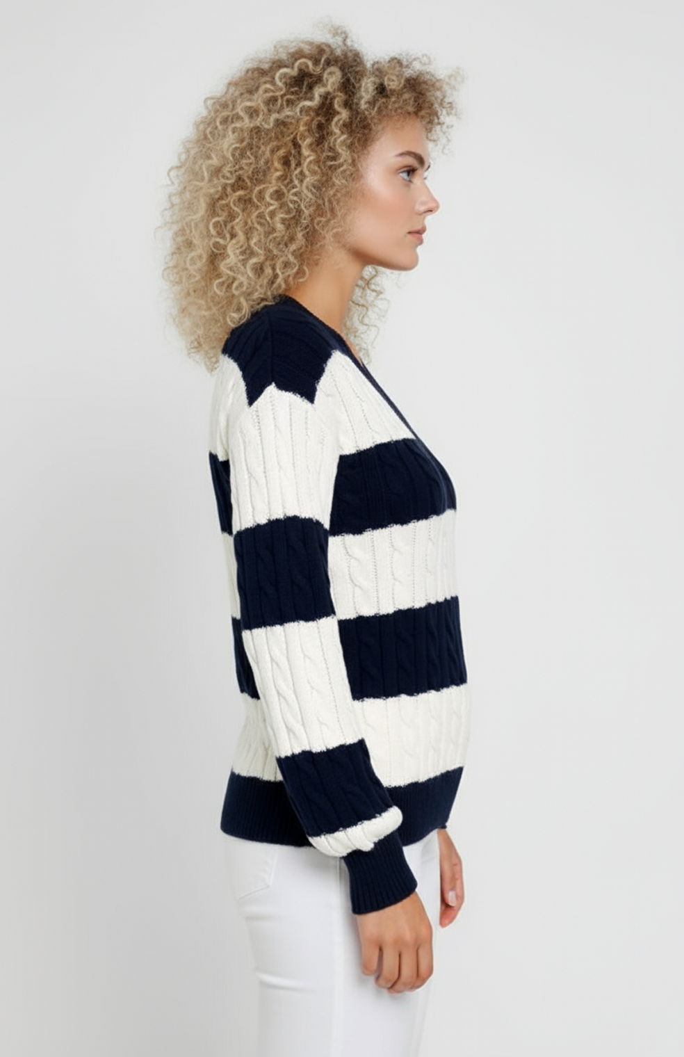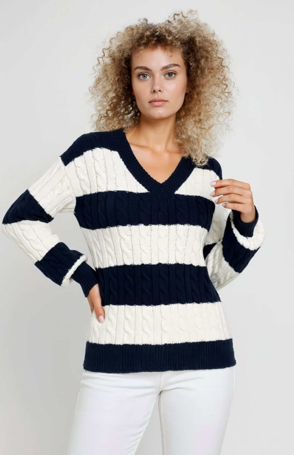 Greta Trui | V-Hals | Kabelpatroon | Brede Strepen | Zacht Comfort