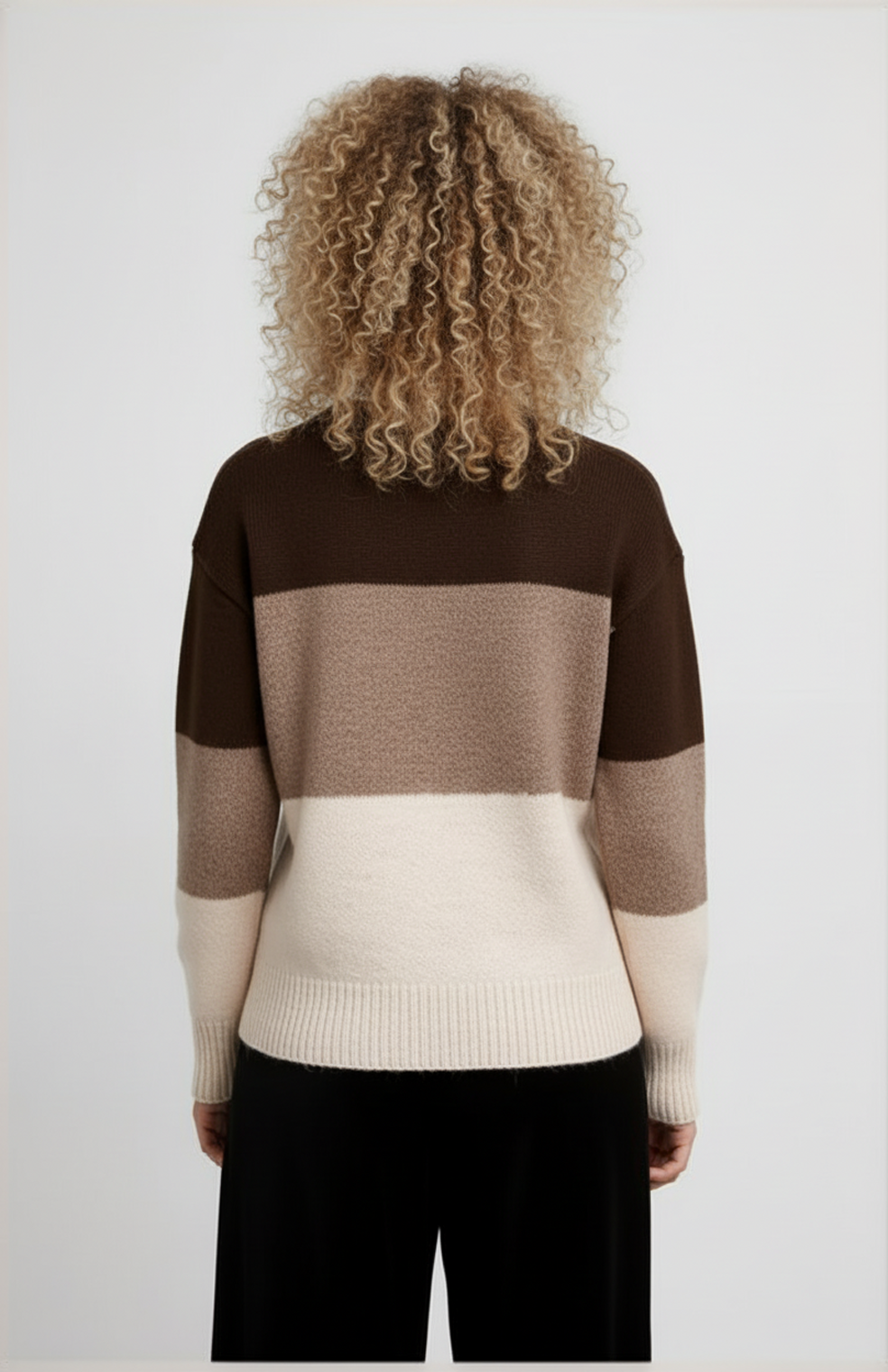 Deze trui met brede kleurbanen biedt een speelse, maar stijlvolle uitstraling. De zachte textuur en verlaagde schoudernaden zorgen voor een ontspannen pasvorm, perfect voor casual gelegenheden.