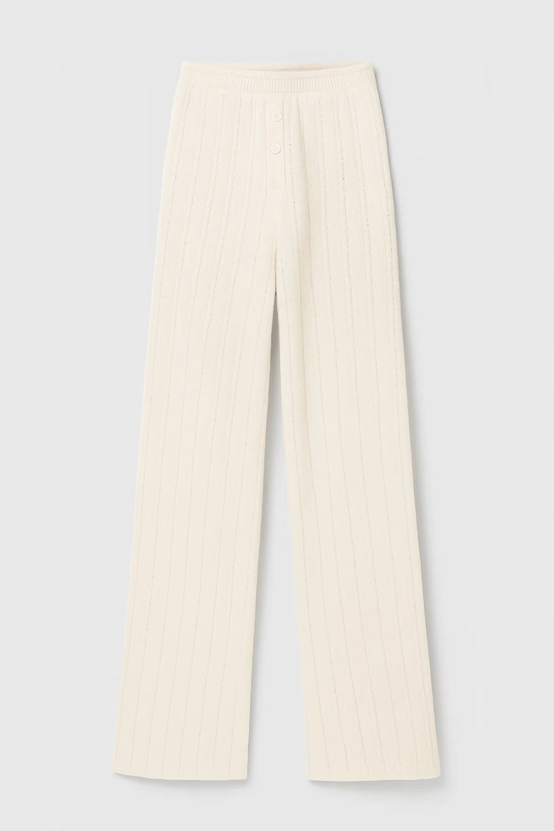 Dames Gebreide Set | Korte Mouwen Top & Wijde Broek | Fijn Opengewerkt Patroon
