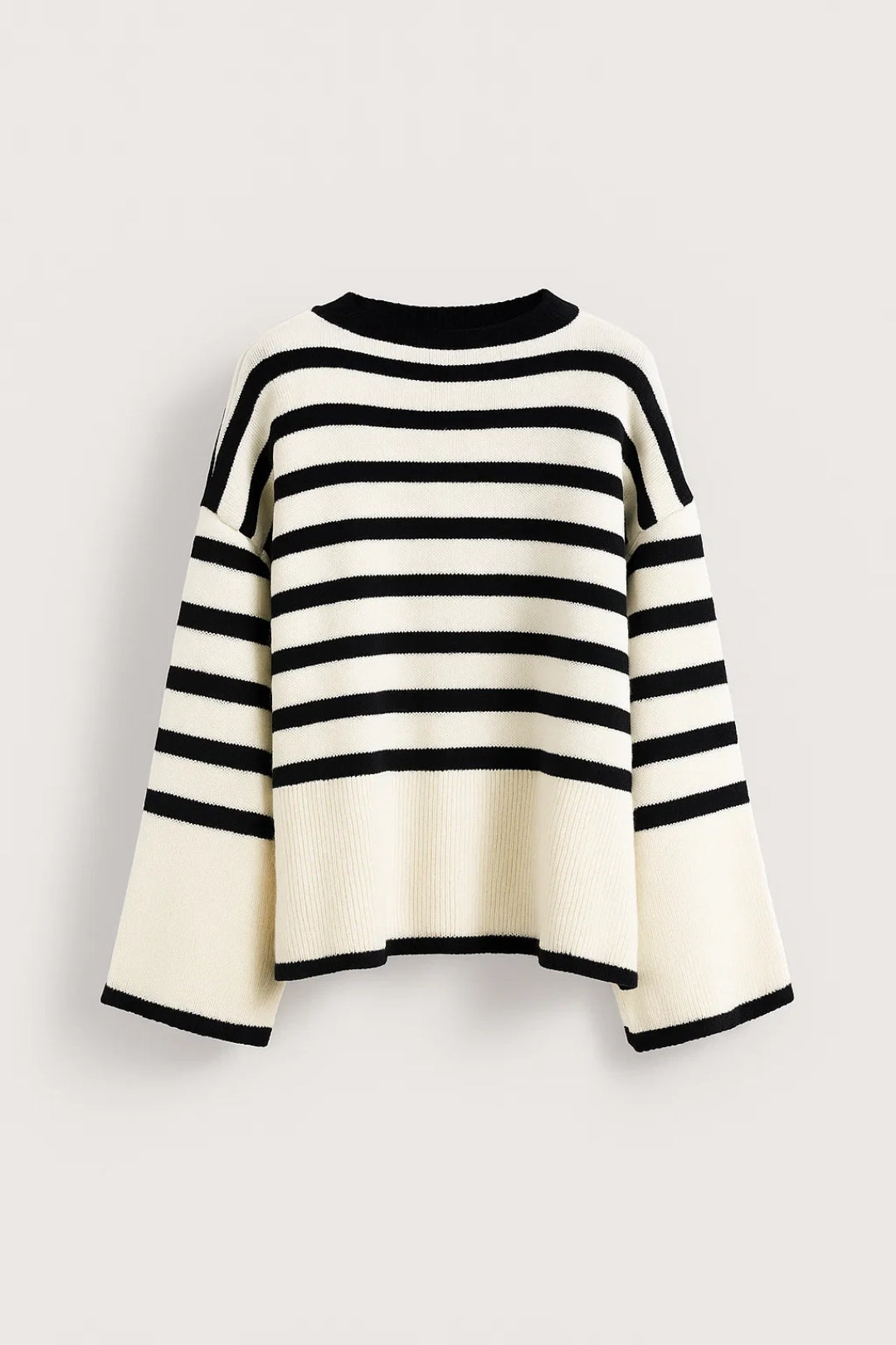 Deze trui heeft een tijdloos streepdessin en een losvallende pasvorm, ideaal voor een ontspannen dag. De ronde hals en verlaagde schoudernaden dragen bij aan de nonchalante uitstraling, waardoor deze trui perfect is voor casual gelegenheden.